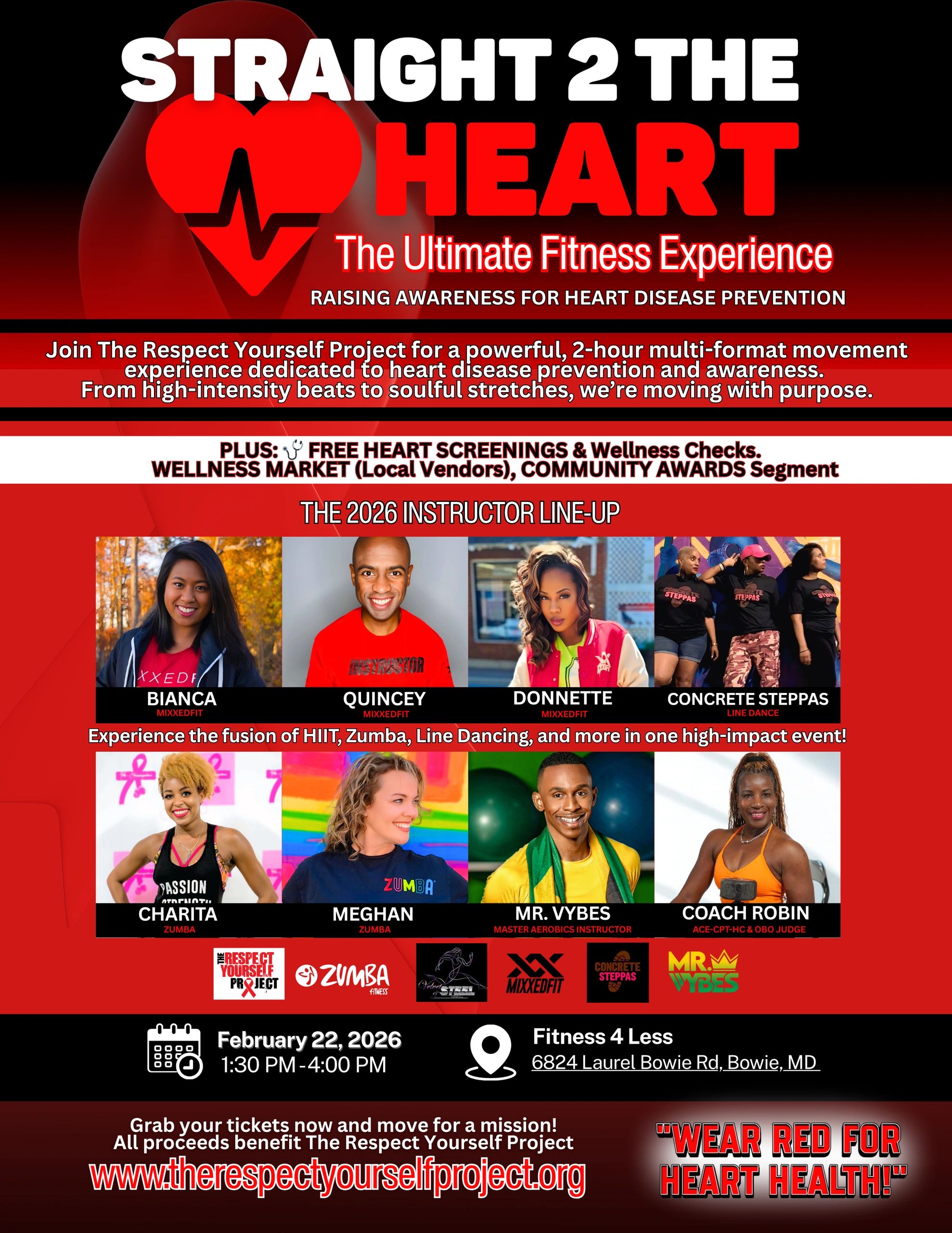 Join The Respect Yourself Project for a powerful, 2-hour multi-format movement experience dedicated to heart disease prevention and awareness. From high-intensity beats to soulful stretches, we’re moving with purpose to celebrate American Heart Month!
